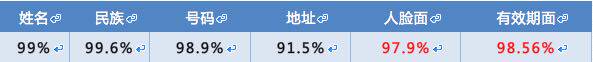 身份证识别在阿里内部某场景下,准确率(条目一字不差完全对)如下: