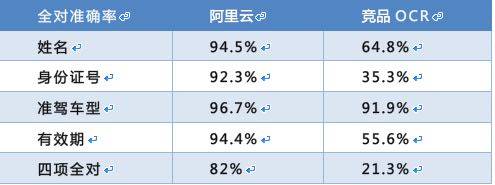 驾驶证的准确率和相关竞品的准确率(条目一字不差完全对)对比如下: