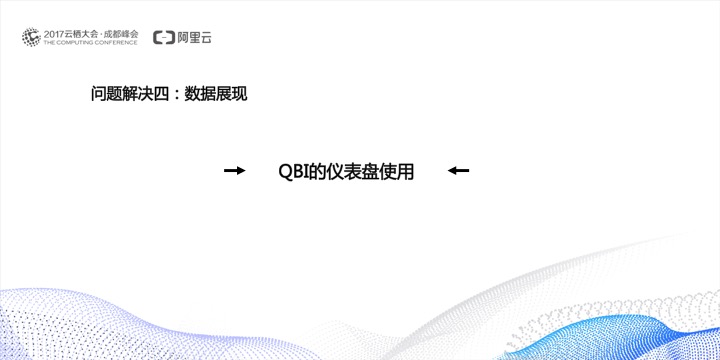 3) 再就是考虑到阿里云数加。当时让我最震撼的就是每年双十一的数据大屏,对数据的展示,这个工具对我们来说很豪华,适用于做展厅的大屏,但是我相信阿里作为一家最具互联网精神的公司,一定会有一个适用于外部中小企业内部日常做数据分析的工具,所以在今年初的时候,我们就联系阿里数加的Quick BI的工作人员,并且我们也做了一个比较,发现这是一个最符合我们当前情况的产品。我们本身就是用的阿里云的基础设施,不存在数据同步和抽取的问题,可以快速上手实现。时间对于我们中小企业来说是最宝贵的。