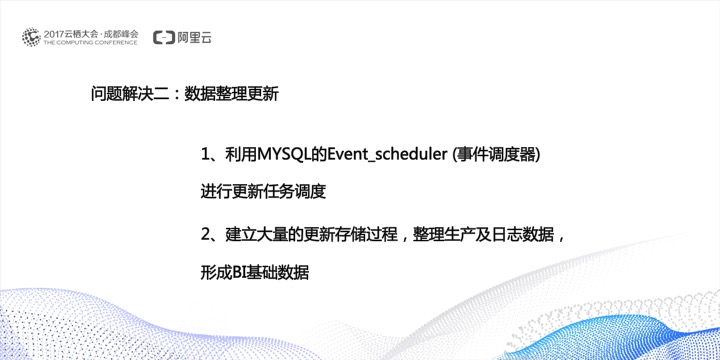 于是我们就需要一个通用的工具:事件调度,来对我们的每一个环节做调度。这个是非常简单的工具,主要是在背后借助了Quick BI非常强大的分析开发能力。另外,我们所同步的数据,以及日志数据,还有我们本地的数据,我看了一下,其实Quick BI主要分析云上的数据,但是它的数据的来源是非常充分的。包括我们其他格式,他都是支持的,所以对于我们中小企业来讲,尤其最早这种体系不完善的,这对我们其实非常方便的。
