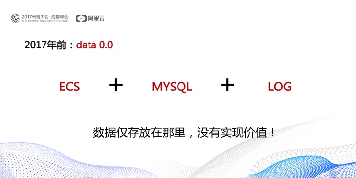 以前这些数据都躺在我们的系统里面。那时候我们用起来的是API,以及这个平台使用了阿里云的一些弹性计算服务等,再加上自己的MySQL数据库,以及我们的日志数据。但这其实对于用户价值的感知并不清楚。这时,数据对我们来说就真的就成本了,我们内部也在想,是时候想想怎么应用这些数据了。